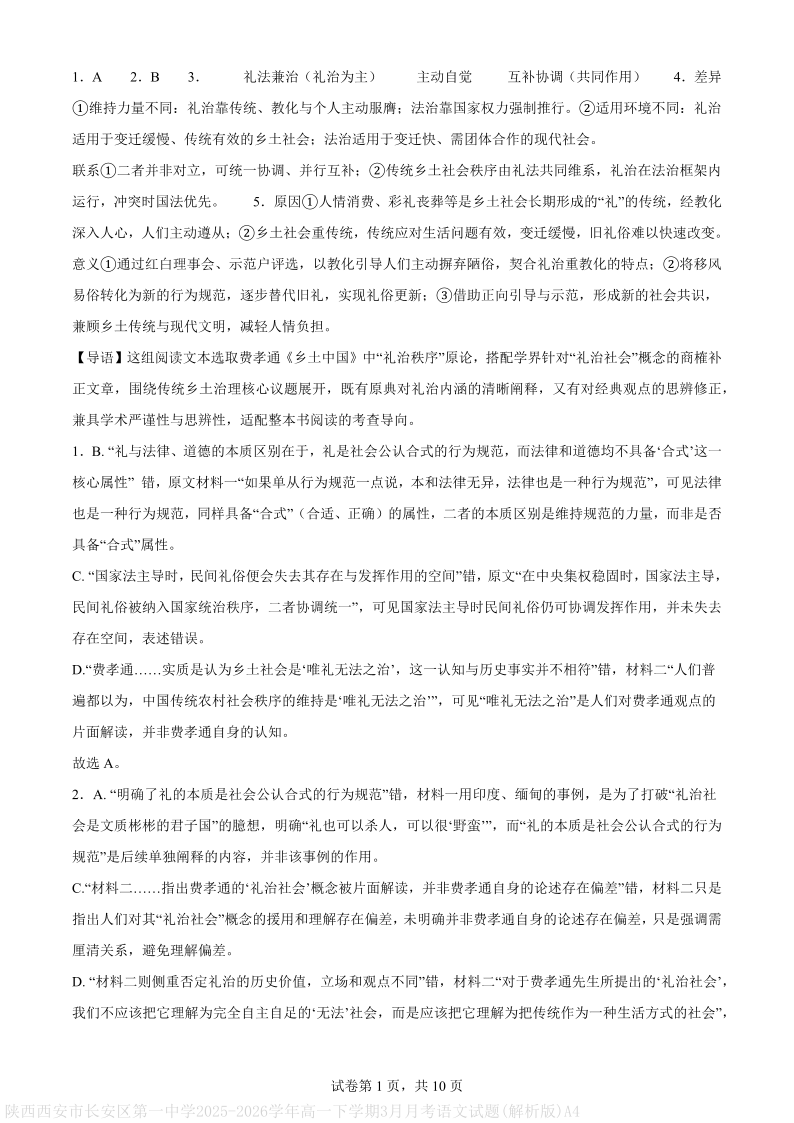 高一语文(解析版)--陕西省西安市长安区第一中学2025-2026学年高一下学期3月阶段检测
