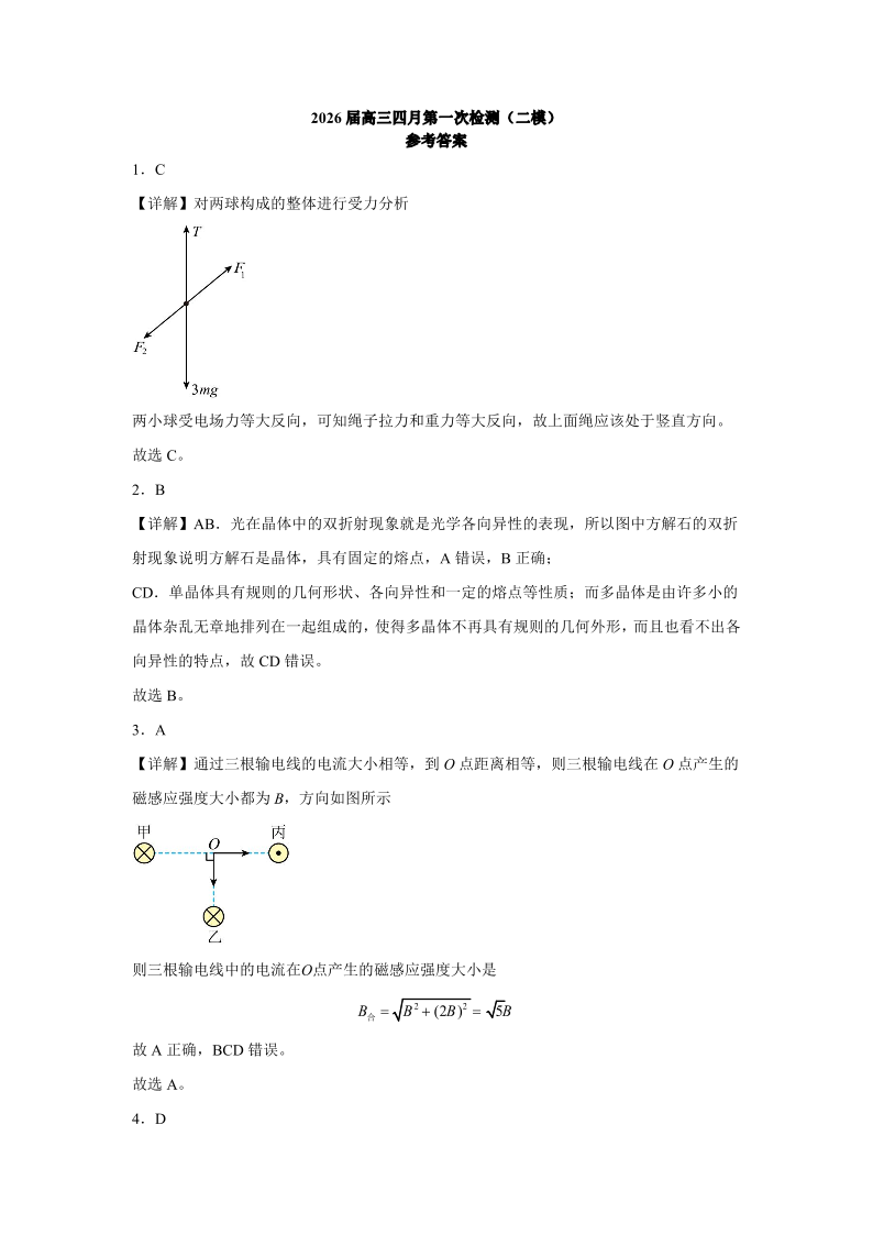 高三物理答案--江苏省南京市第六十六中学2026届高三四月第一次检测(二模)