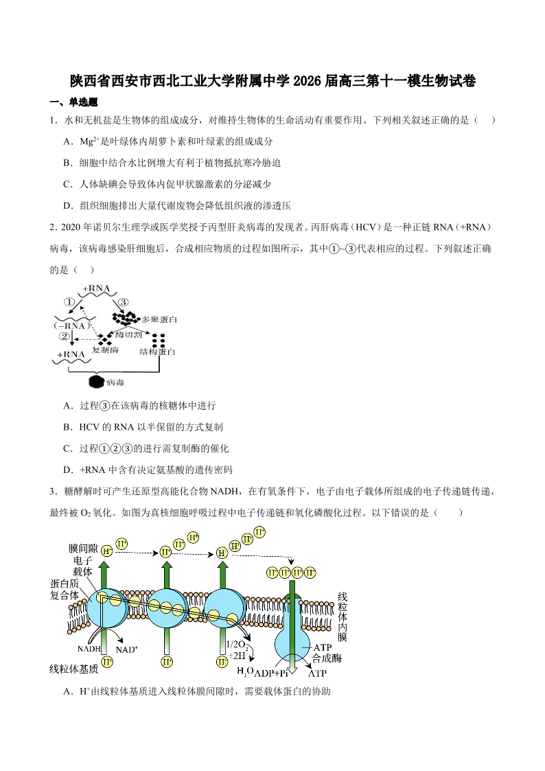 高三生物+答案--陕西省西北工业大学附属中学2026届高三下学期第十一次适应性训练