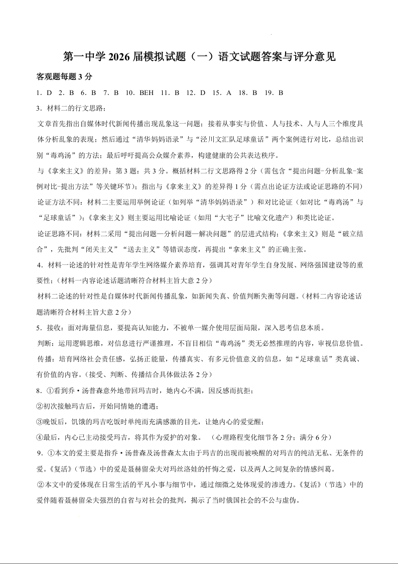 高三语文答案--陕西省西北工业大学附属中学2026届高三下学期第十一次适应性训练