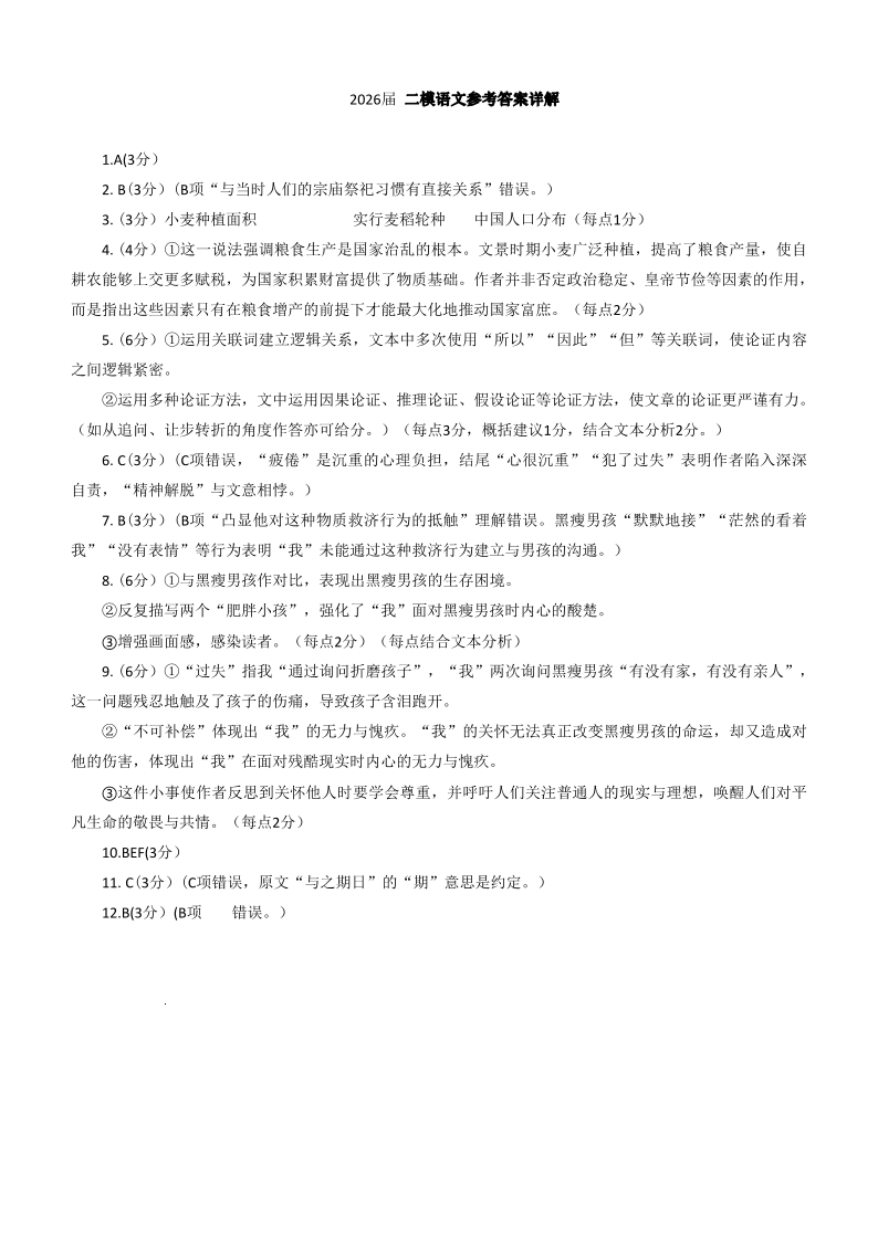 高三语文答案--吉林省长春市2026届高三质量监测(二)(长春二模)