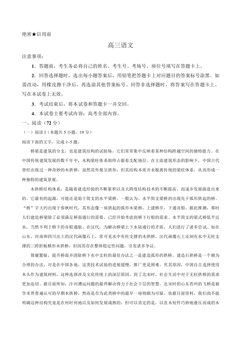 高三语文--辽宁抚顺市六校协作体2026届高三下学期一模考试