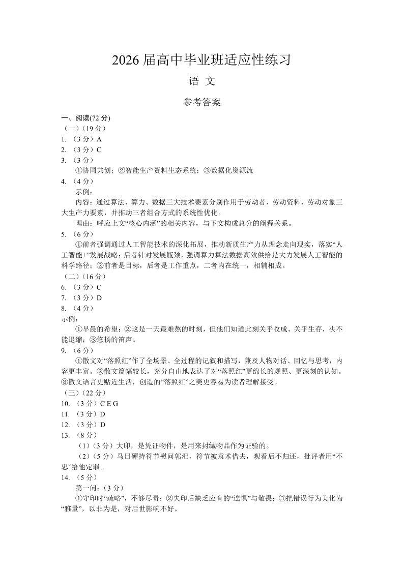 高三语文答案--福建省2026届高中毕业班4月适应性练习(省质检)