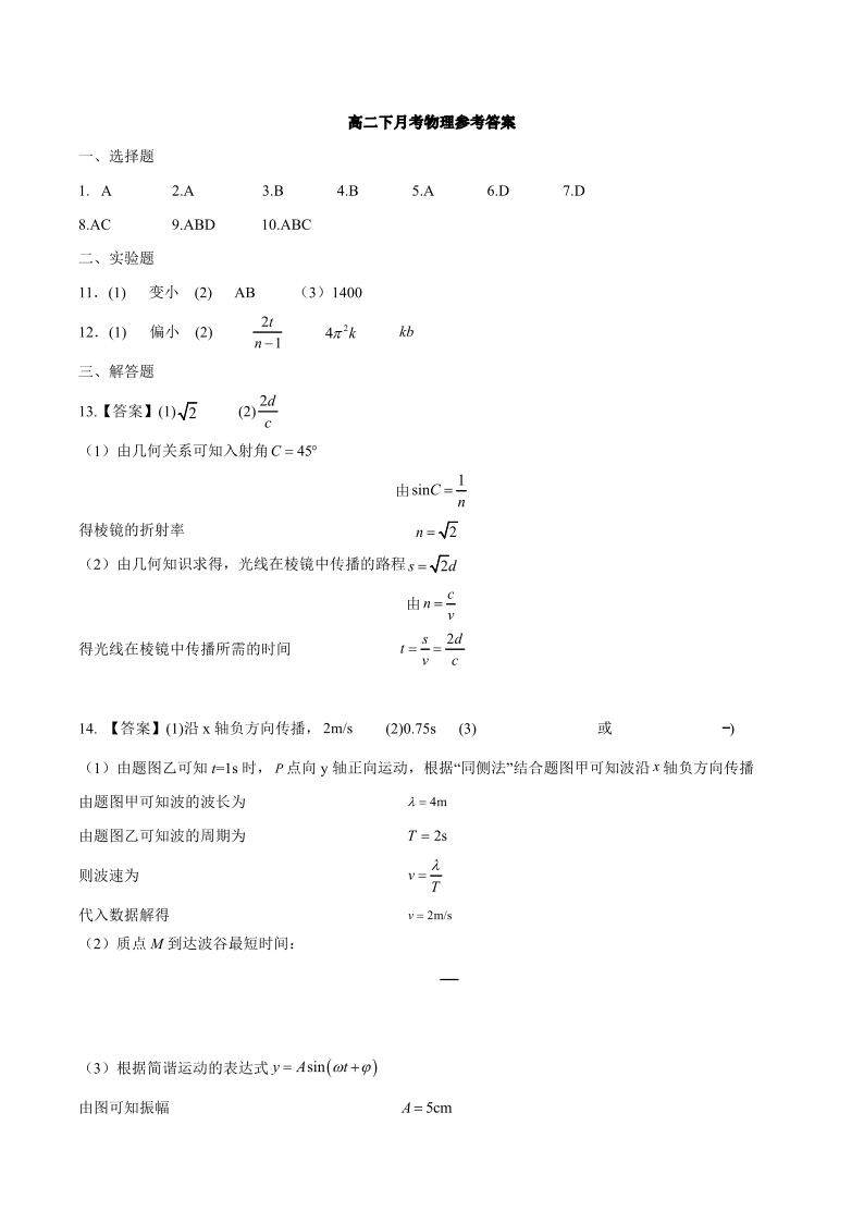 高二物理答案--黑龙江省哈尔滨市第三中学2025—2026学年度下学期高二学年4月月考