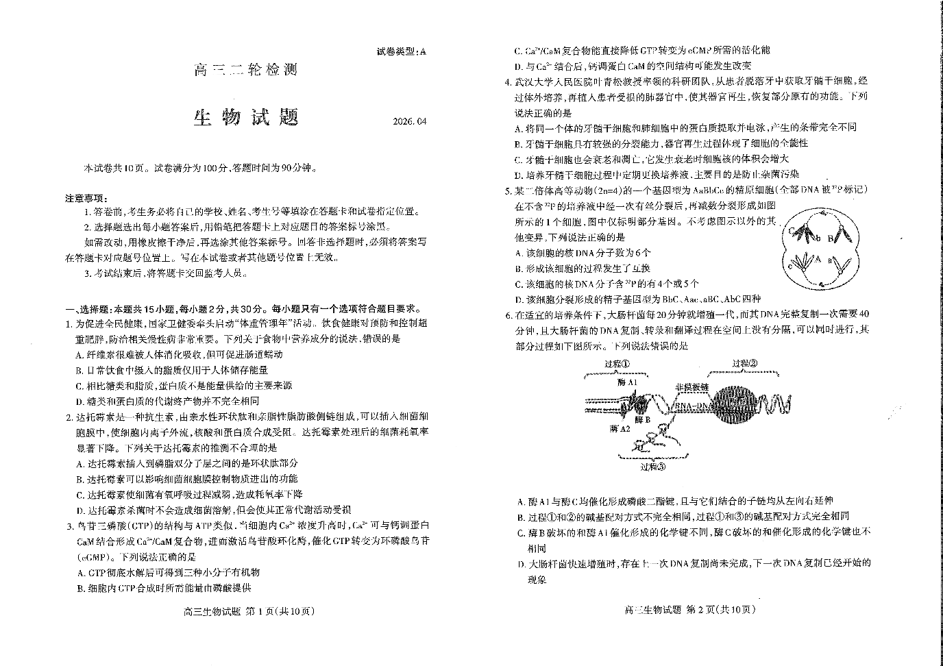 高三生物--山东省泰安市2026届高三下学期4月二轮检测(泰安二模)