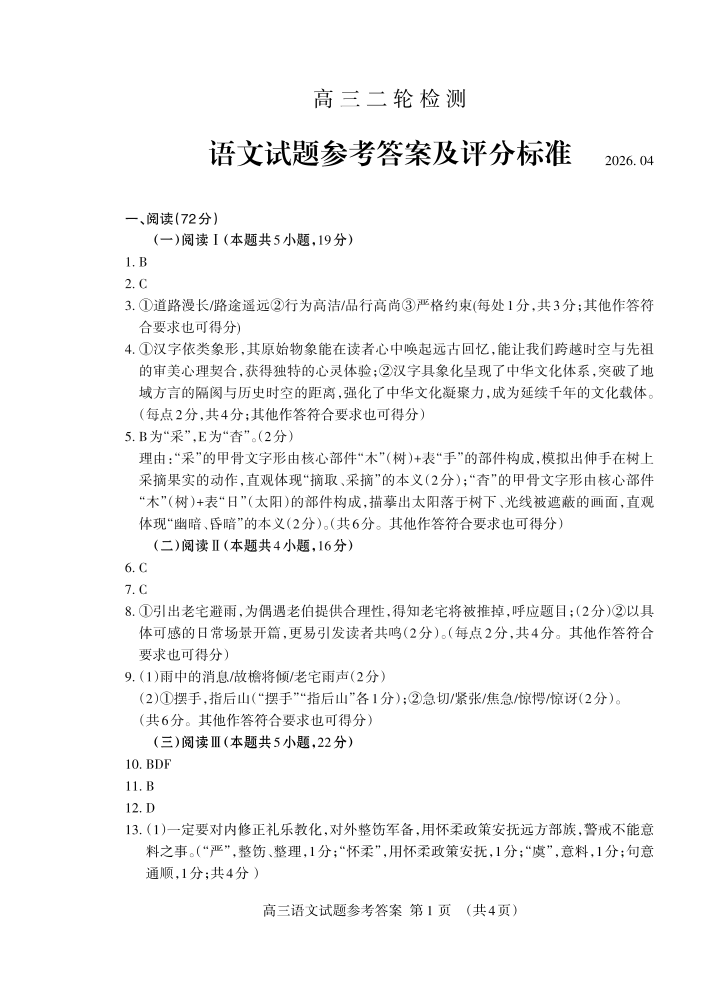 高三语文答案--山东省泰安市2026届高三下学期4月二轮检测(泰安二模)