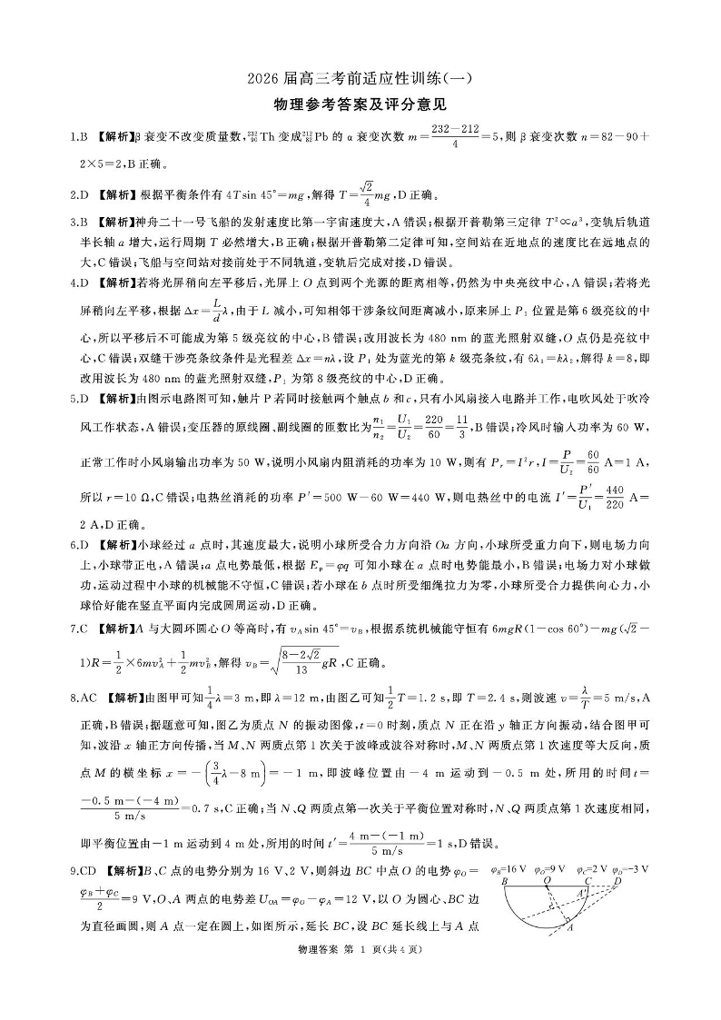 高三物理答案--百师联盟2026届高三考前适应性训练(一)