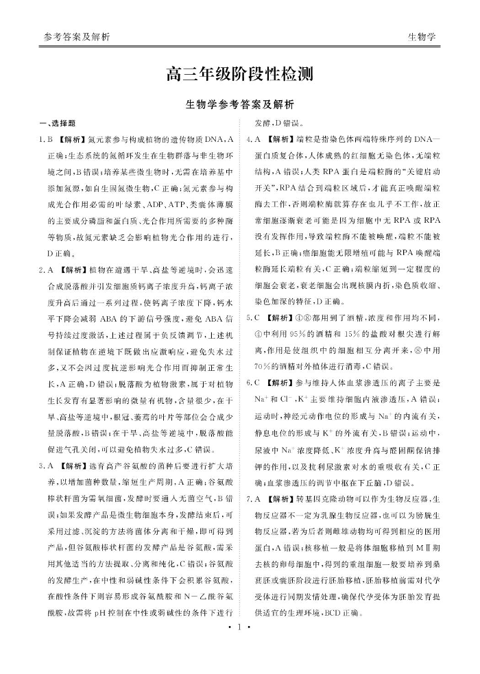 高三生物答案--陕西省2026届高三衡水金卷4月联考(安康阶段性检测)