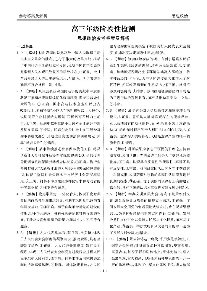 高三政治答案--陕西省2026届高三衡水金卷4月联考(安康阶段性检测)