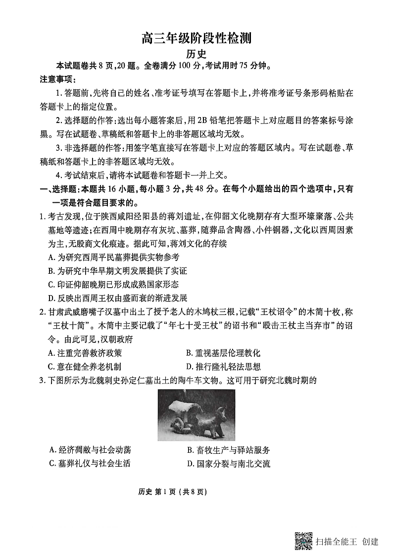 高三历史--陕西省2026届高三衡水金卷4月联考(安康阶段性检测)
