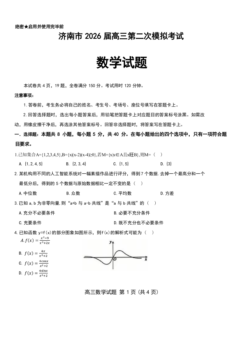 数学试题--山东省济南市2026届高三第二次模拟考试