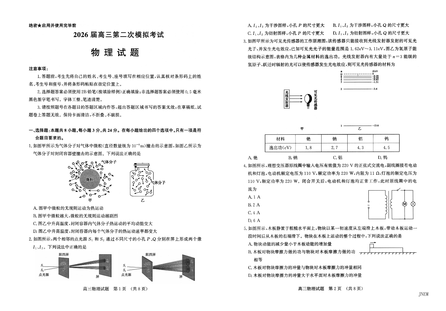 物理试题--山东省济南市2026届高三第二次模拟考试