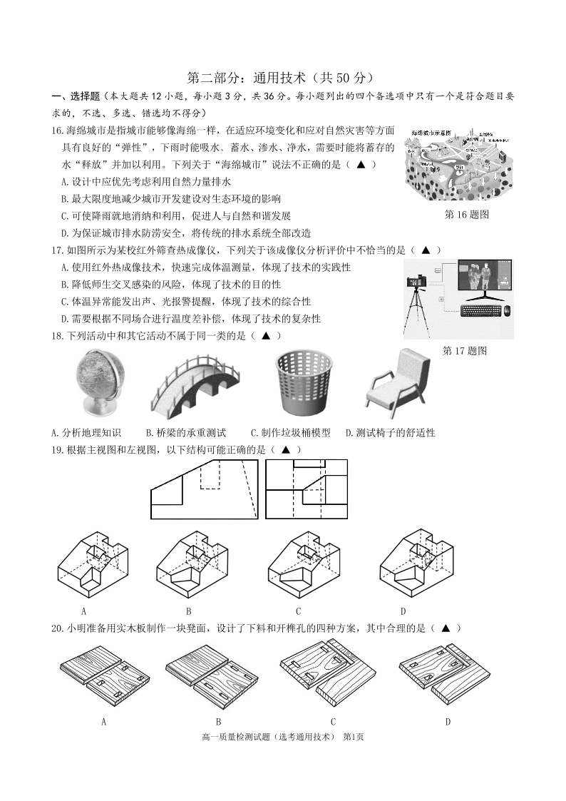 高一技术--浙江省余姚中学2025-2026学年高一下学期4月质量检测