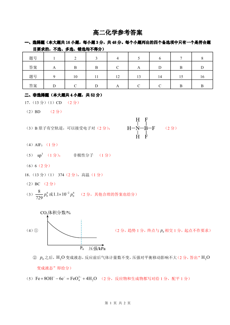 高二化学答案--浙江省余姚中学2025-2026学年高二下学期4月质量检测
