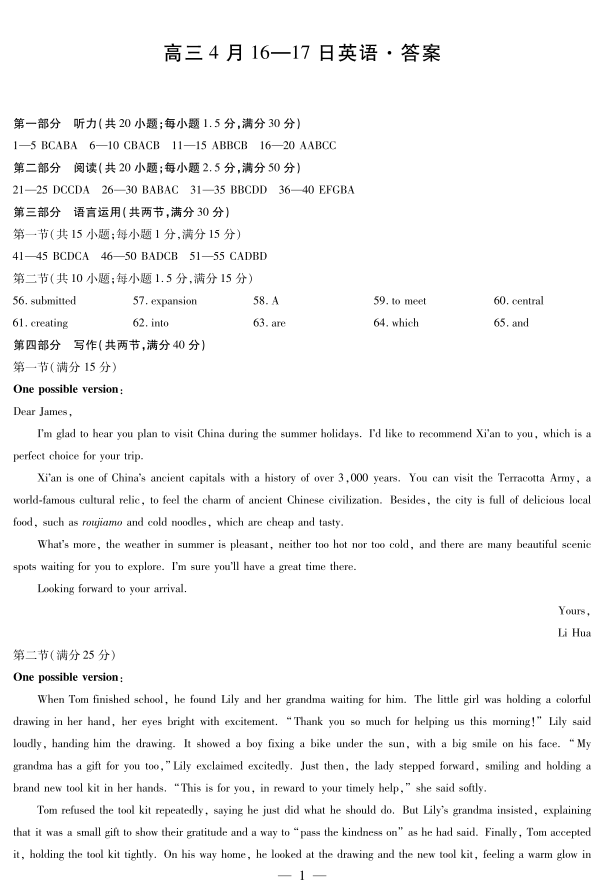 高三英语答案--安徽省合肥市第六中学等学校2026届高三4月联考