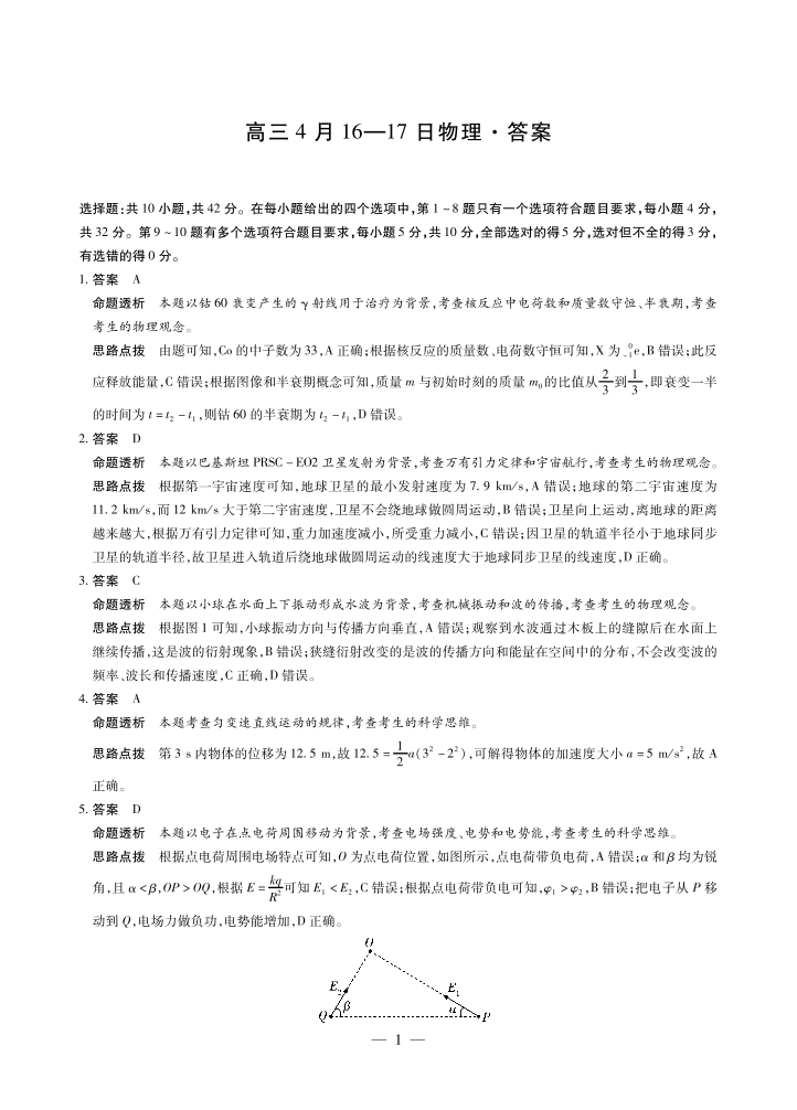 高三物理答案--安徽省合肥市第六中学等学校2026届高三4月联考