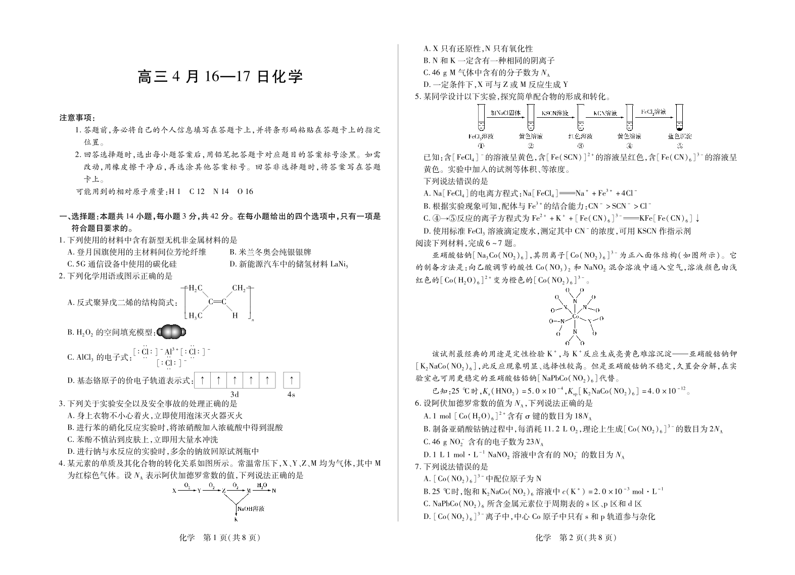 高三化学--安徽省合肥市第六中学等学校2026届高三4月联考