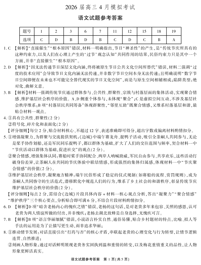 高三语文答案--安徽省江淮十校2026届高三下学期4月模拟考试(安庆市高三三模)