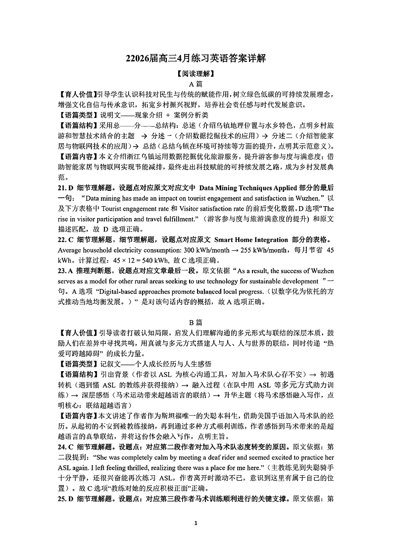 高三英语答案--广东省惠州市、韶关市2026届高三下学期4月模拟考试