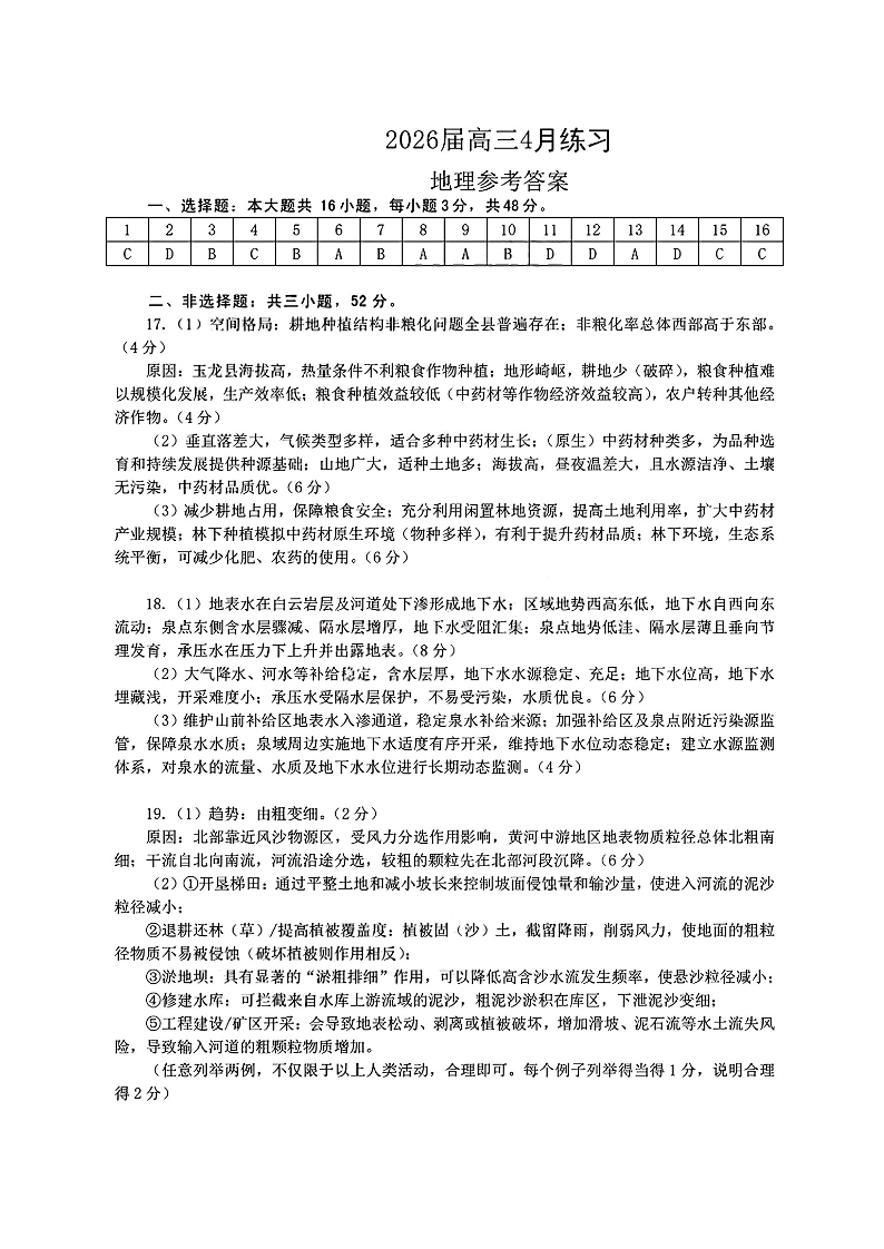 高三地理答案--广东省惠州市、韶关市2026届高三下学期4月模拟考试