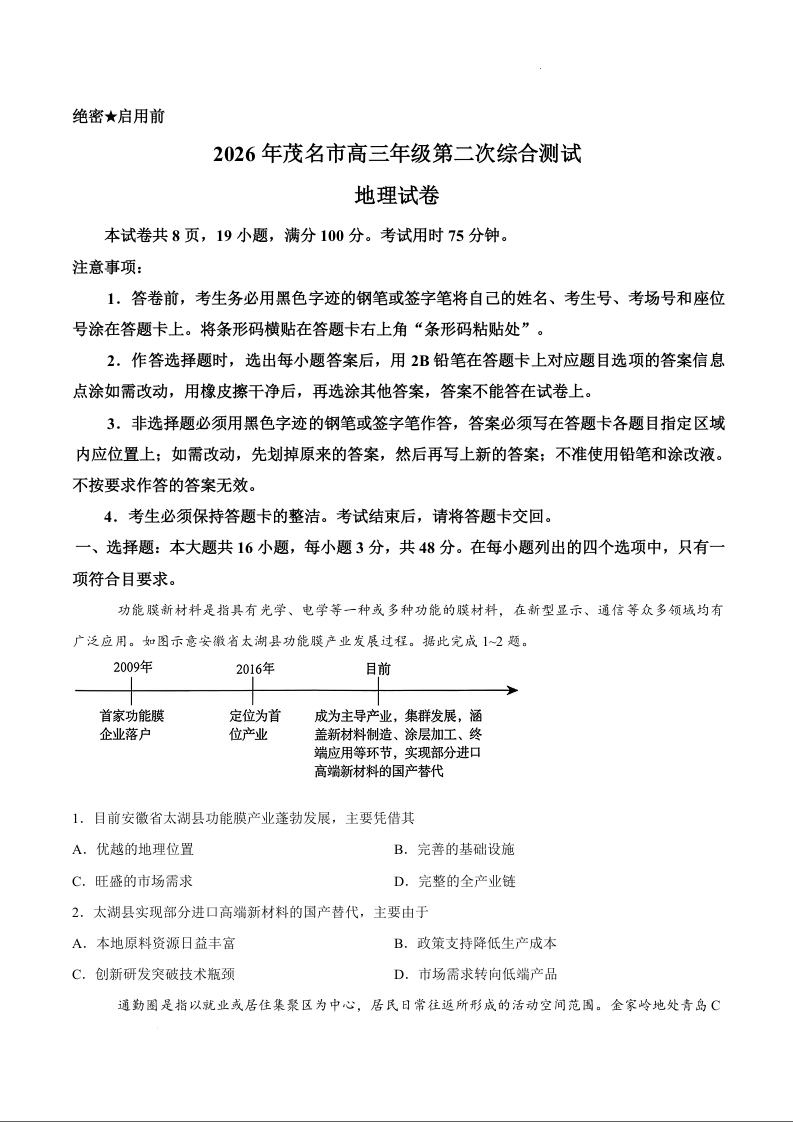 高三地理--广东省茂名市2026届高三第二次综合测试(茂名二模)