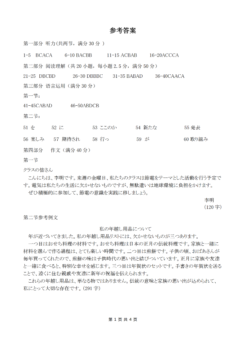 高三日语答案--广东省茂名市2026届高三第二次综合测试(茂名二模)