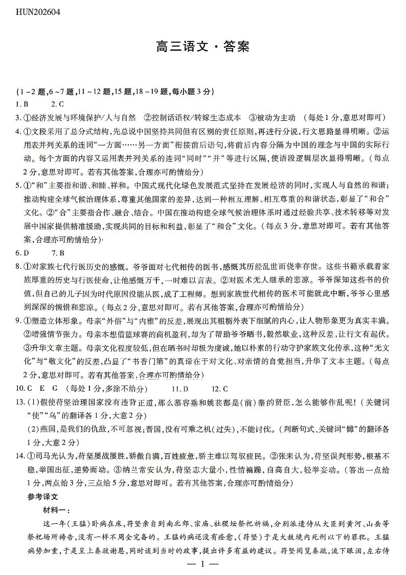 高三语文答案--湖南省、广西壮族自治区天一大联考2026届高三4月大联考