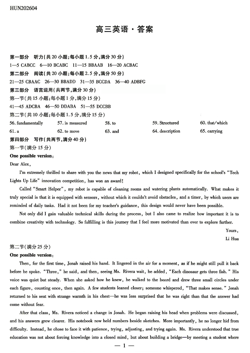 高三英语答案--湖南省、广西壮族自治区天一大联考2026届高三4月大联考
