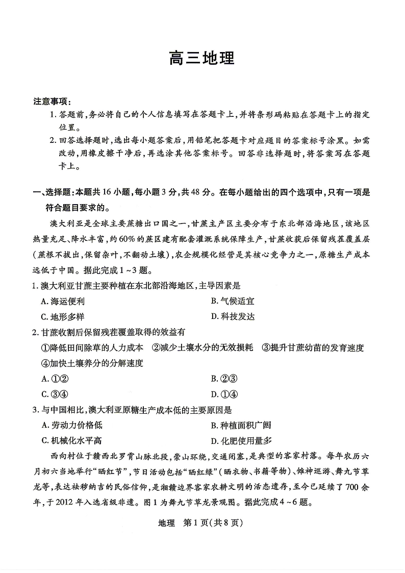 高三地理+答案--湖南省、广西壮族自治区天一大联考2026届高三4月大联考