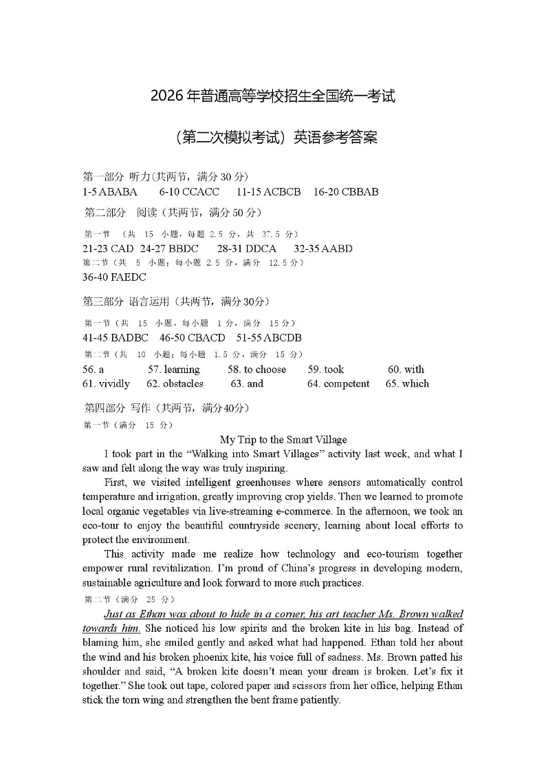 高三英语答案--内蒙古包头市2026届高三下学期二模考试(包头二模)