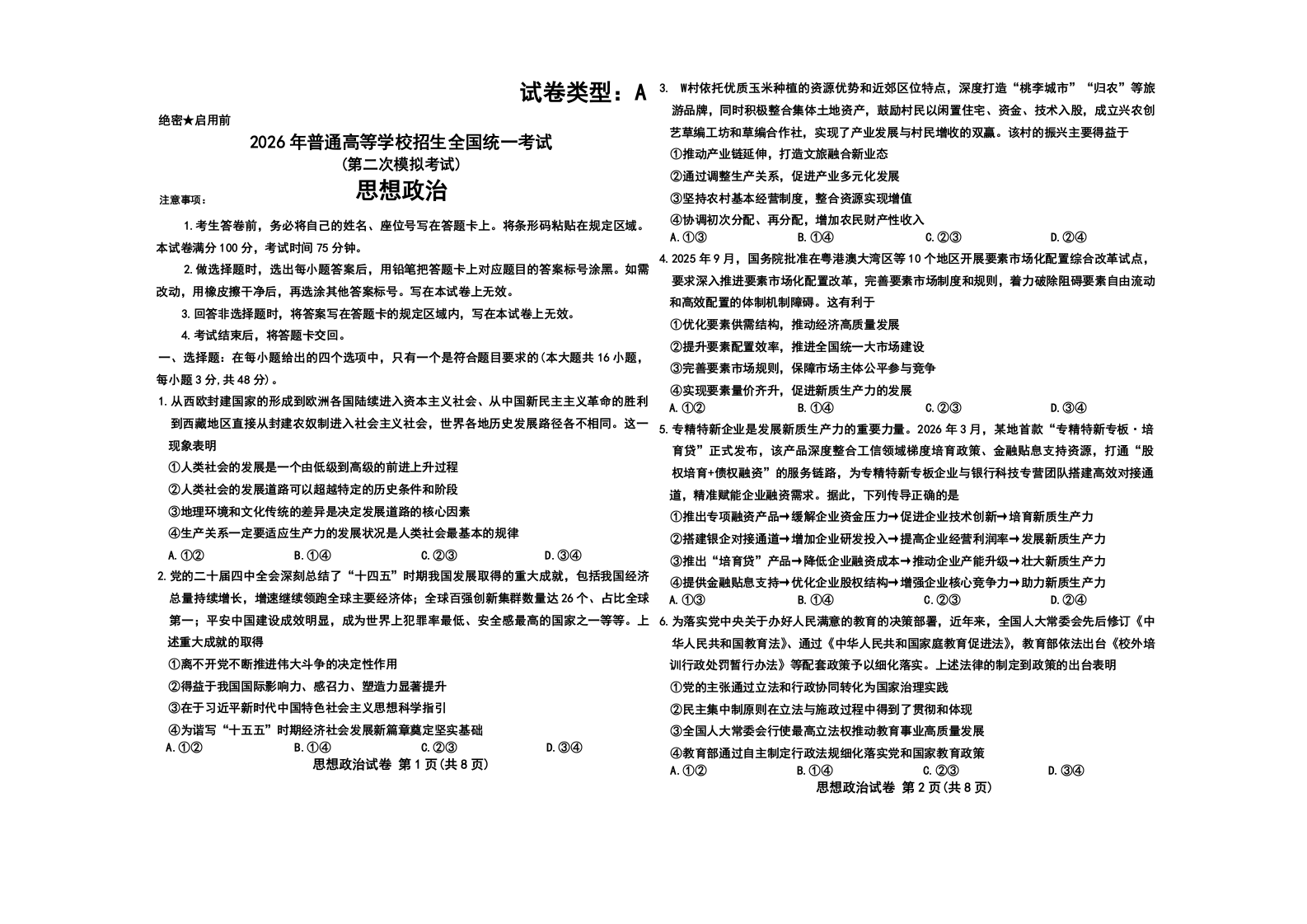 高三政治--内蒙古包头市2026届高三下学期二模考试(包头二模)