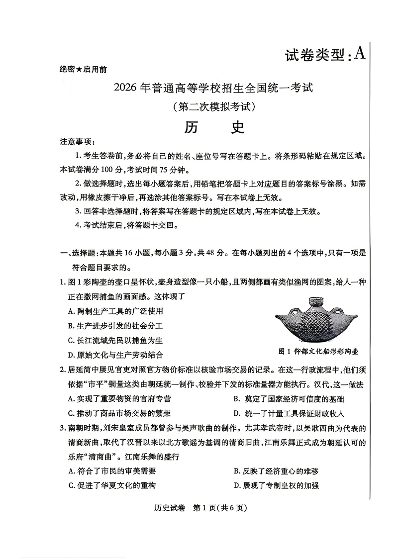高三历史--内蒙古包头市2026届高三下学期二模考试(包头二模)