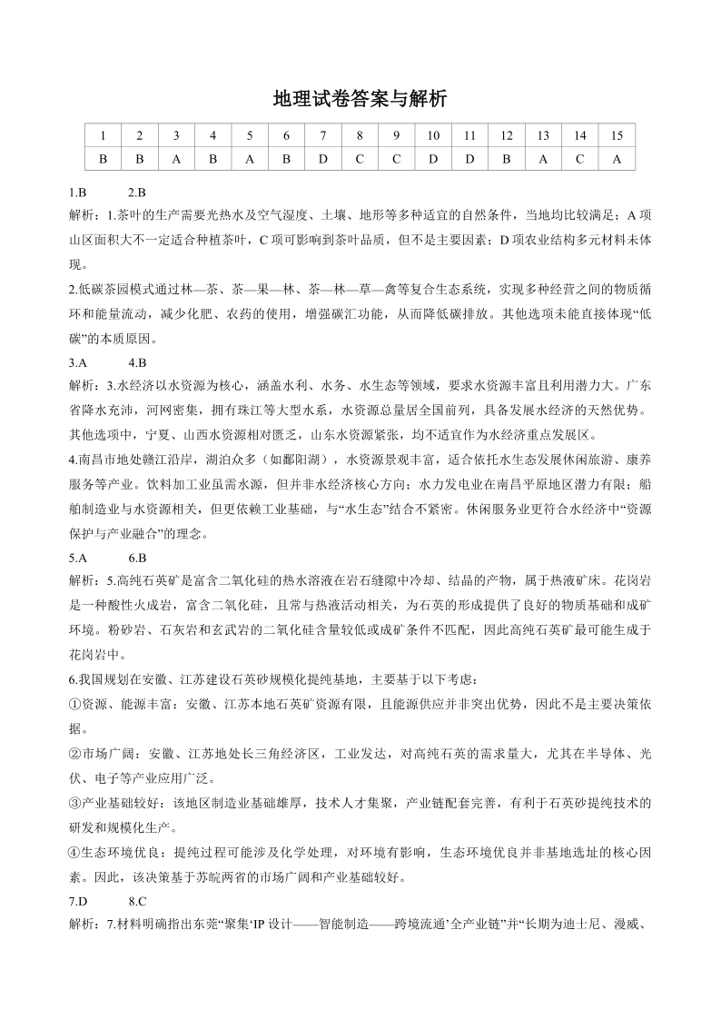 高三地理答案--重庆市第八中学2026届高三强化训练(一)
