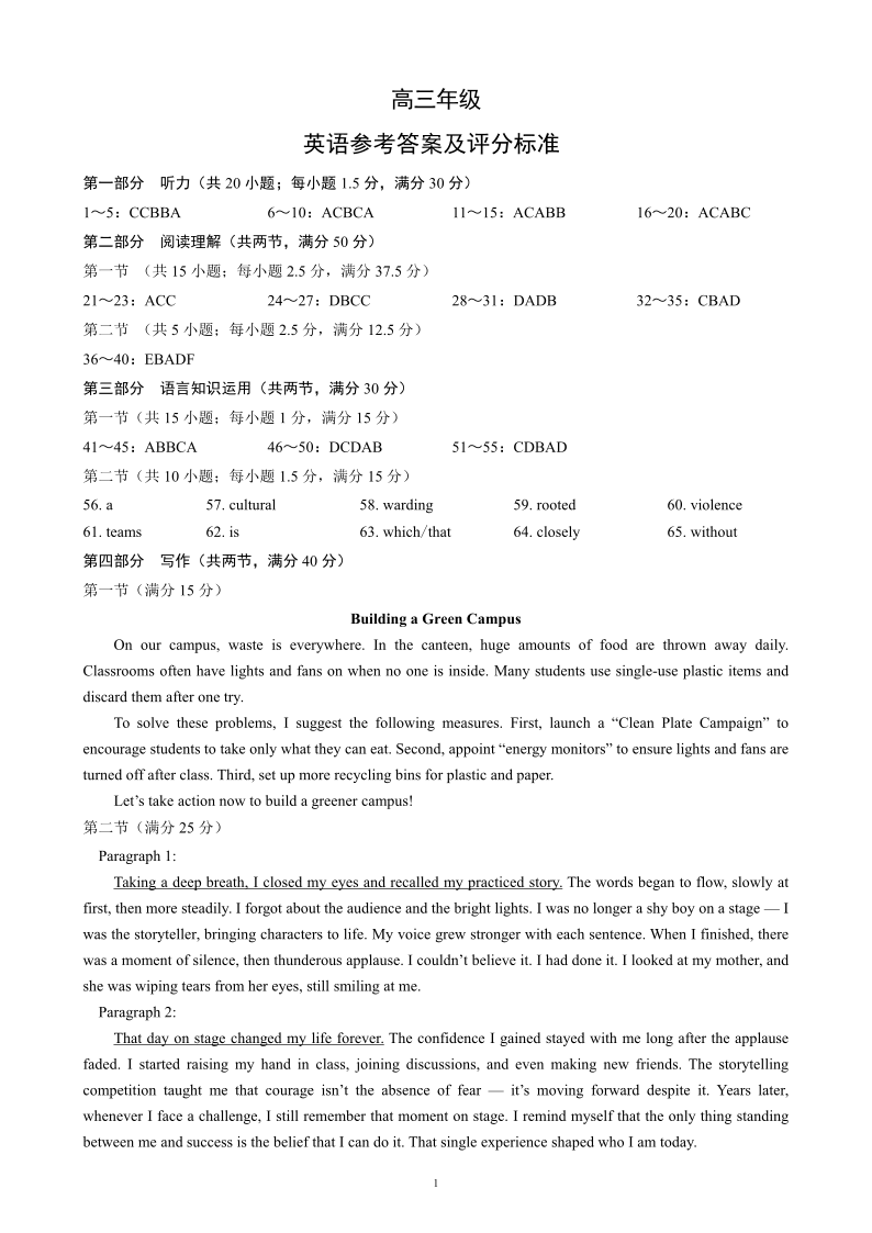 高三英语答案--四川省蓉城名校联盟2026届高三第二次联合诊断性考试
