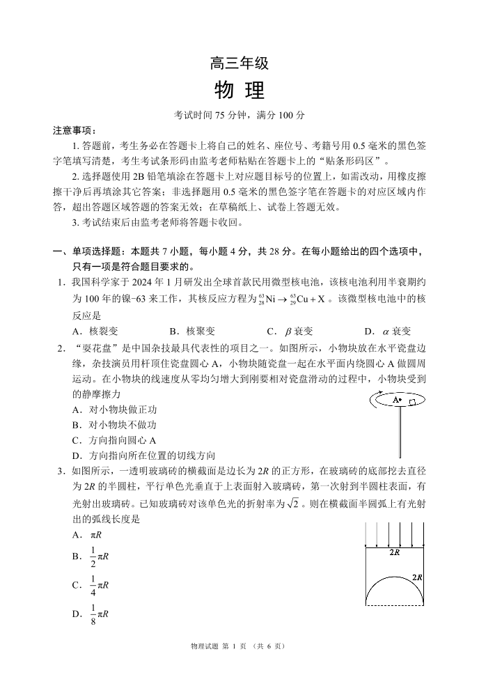 高三物理--四川省蓉城名校联盟2026届高三第二次联合诊断性考试