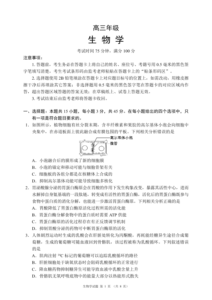 高三生物--四川省蓉城名校联盟2026届高三第二次联合诊断性考试