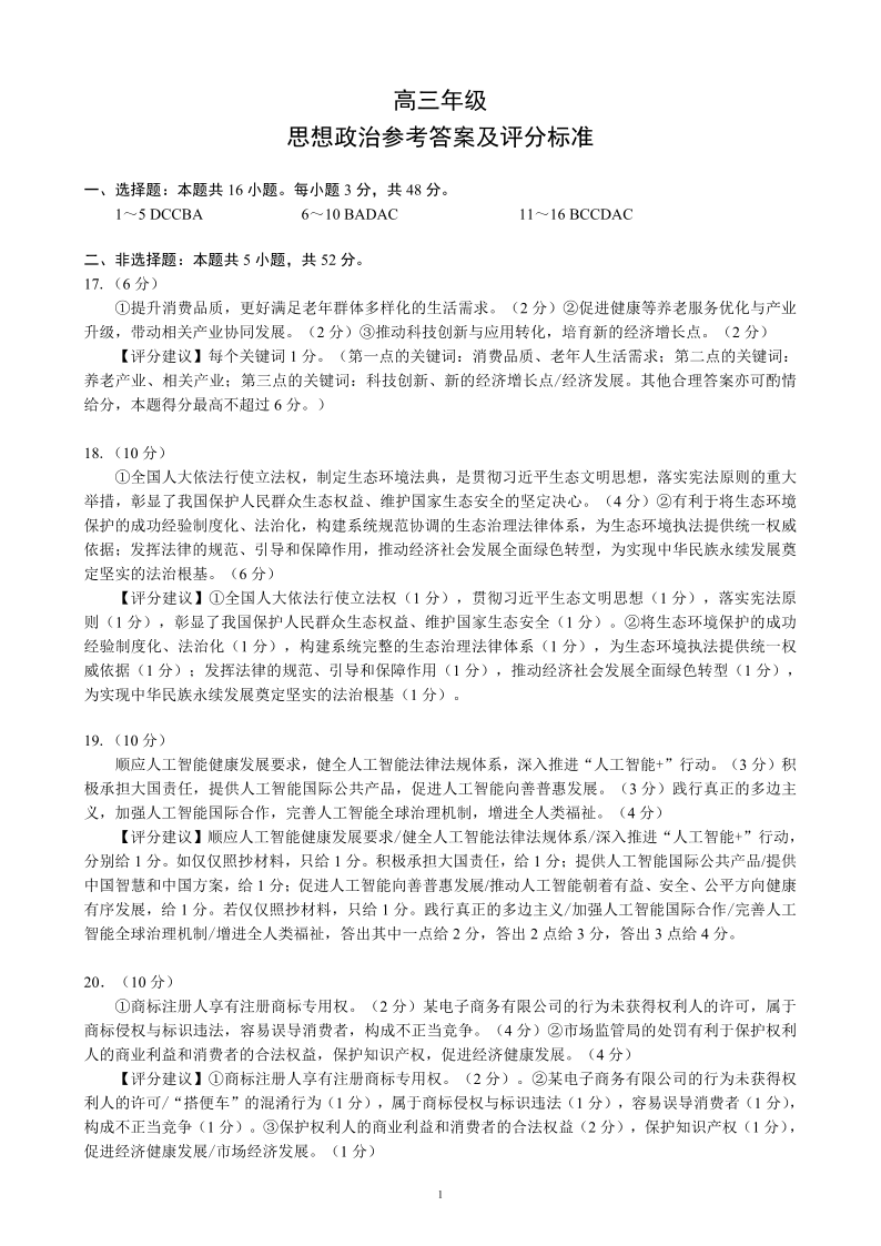 高三政治答案--四川省蓉城名校联盟2026届高三第二次联合诊断性考试