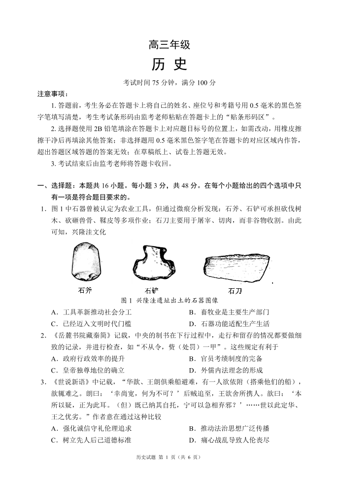 高三历史--四川省蓉城名校联盟2026届高三第二次联合诊断性考试