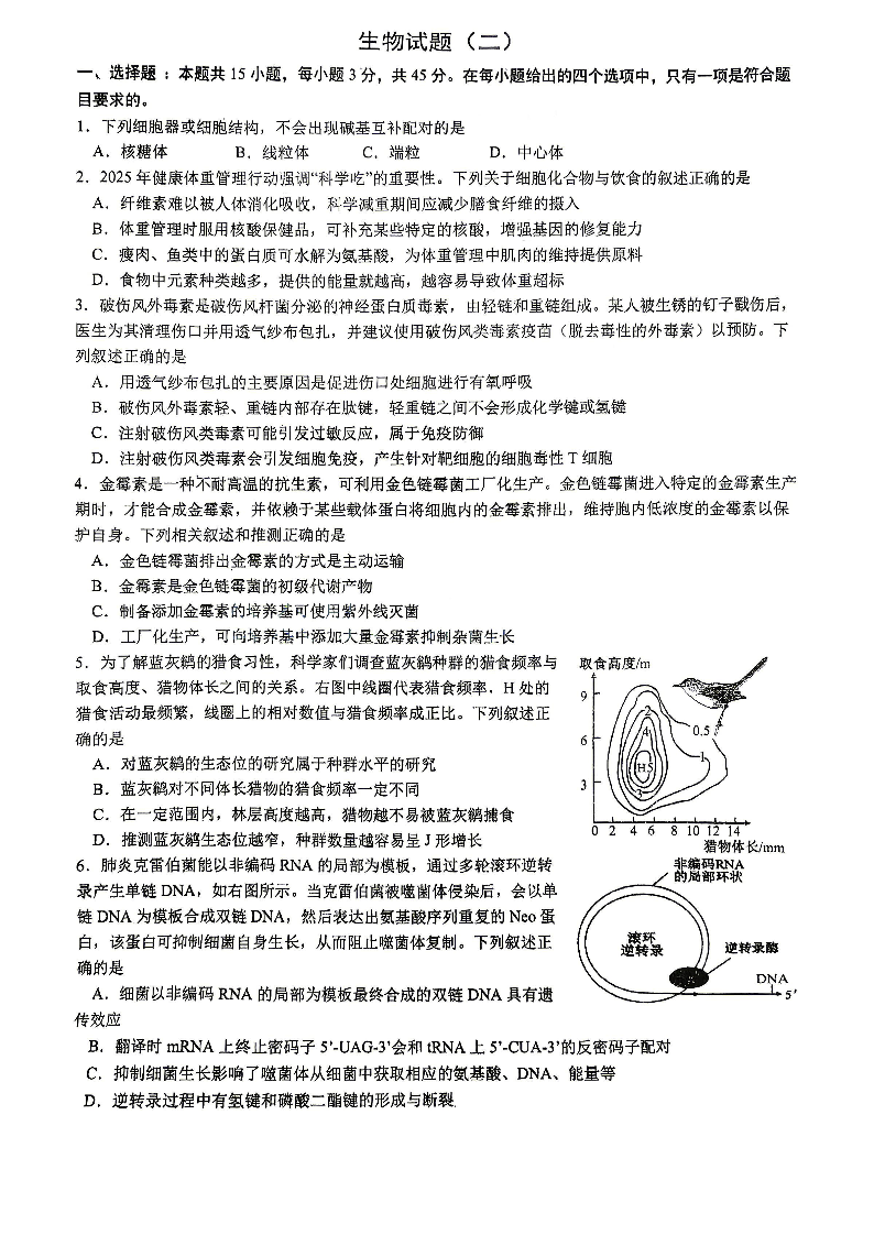 高三生物--重庆市第八中学2026届高三强化训练(二)
