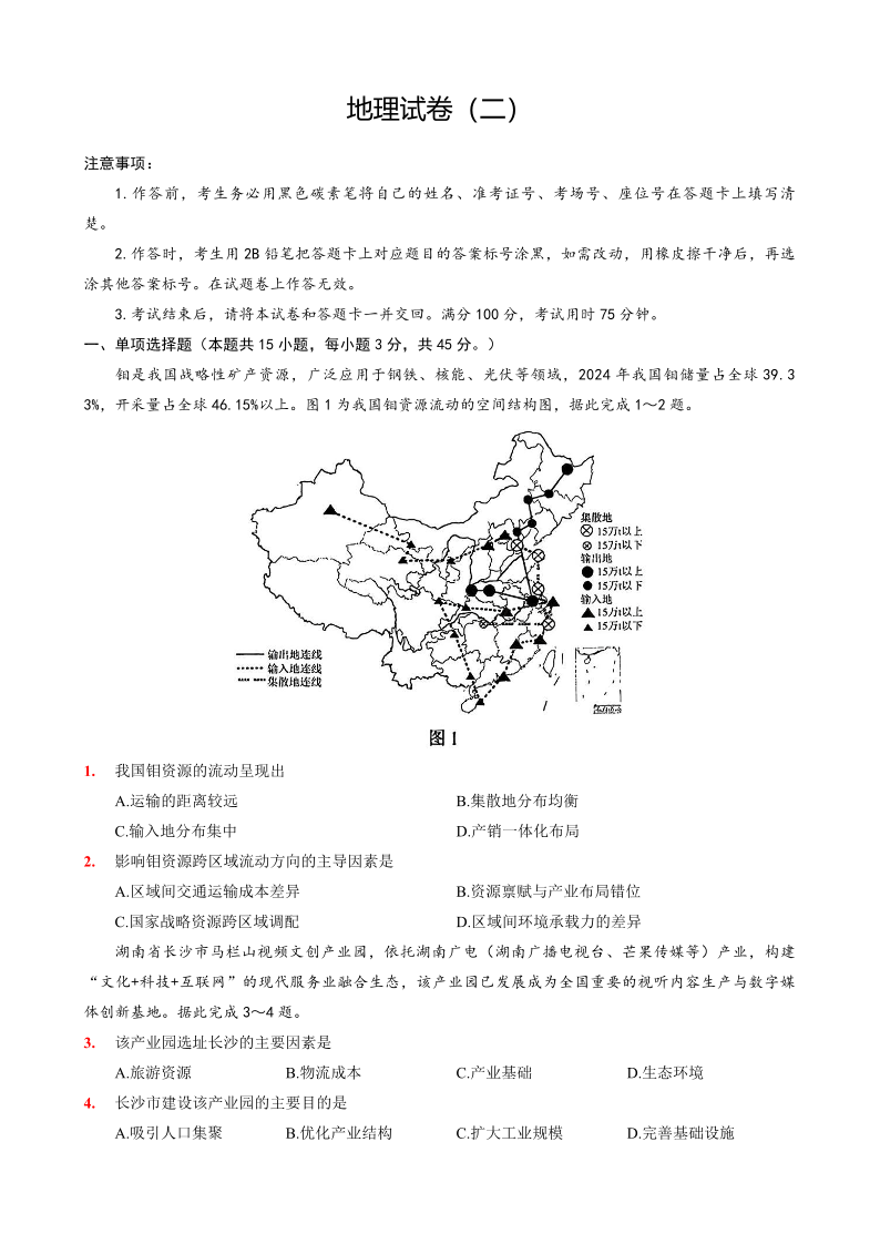 高三地理--重庆市第八中学2026届高三强化训练(二)
