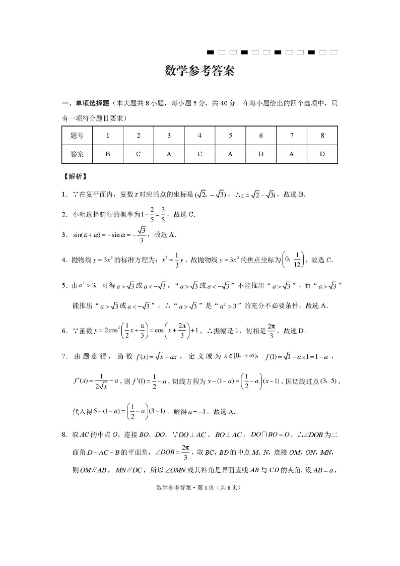 高三数学答案--云南省3+3+3西南名校联盟2026届高三4月联考