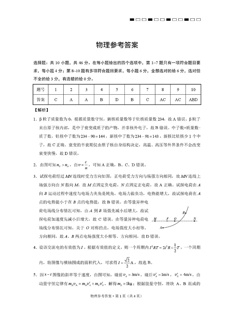 高三物理答案--云南省3+3+3西南名校联盟2026届高三4月联考
