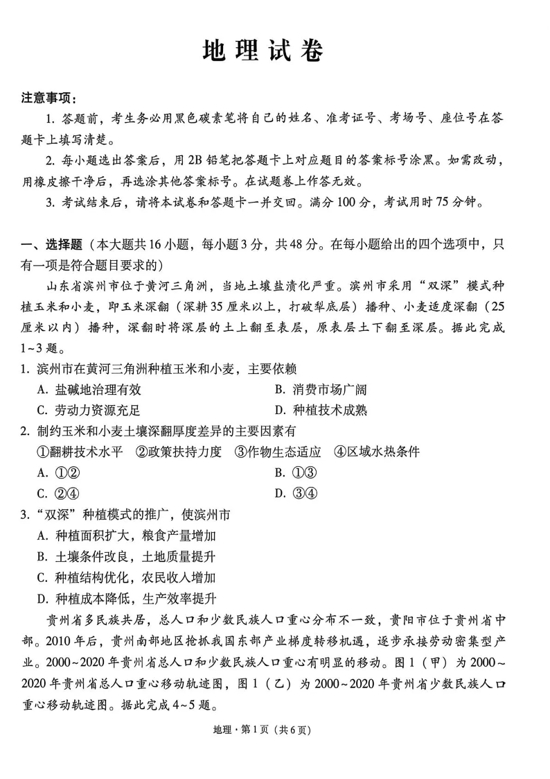 高三地理--云南省3+3+3西南名校联盟2026届高三4月联考