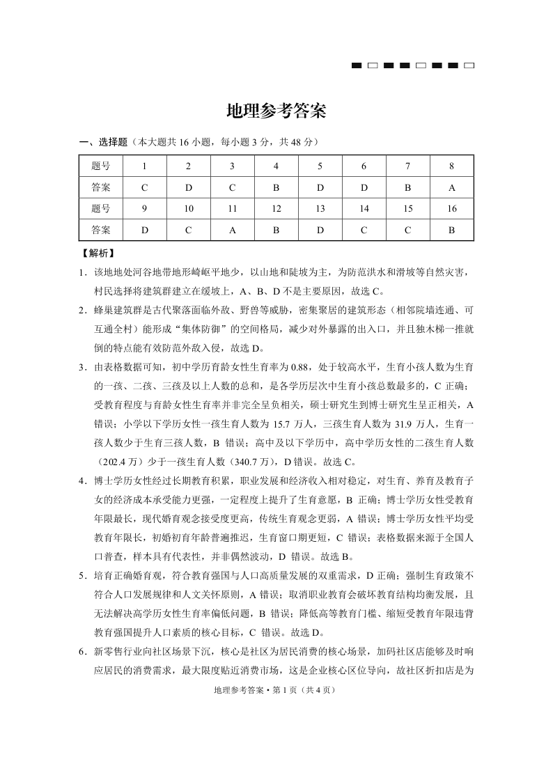 高三地理答案--贵州省六校联盟2026届高三4月高考实用性联考卷(三)