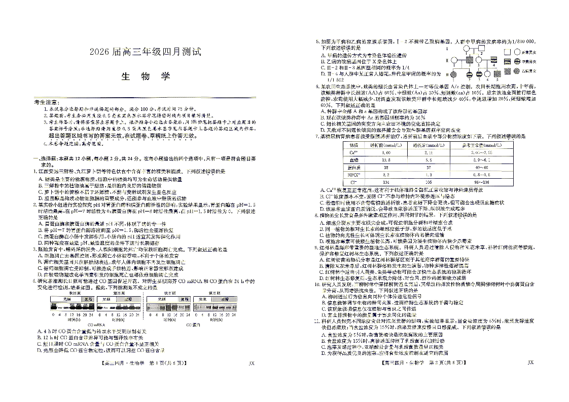 高三生物--九师联盟2026届高三年级下学期4月测试