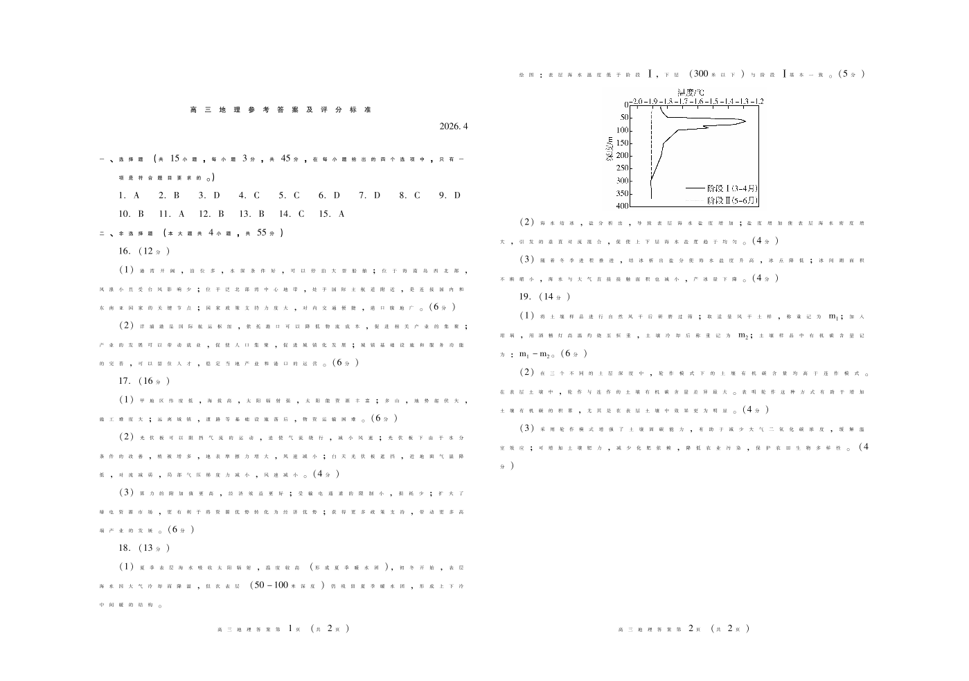 高三地理答案--山东省潍坊市2026.4高三二模统考