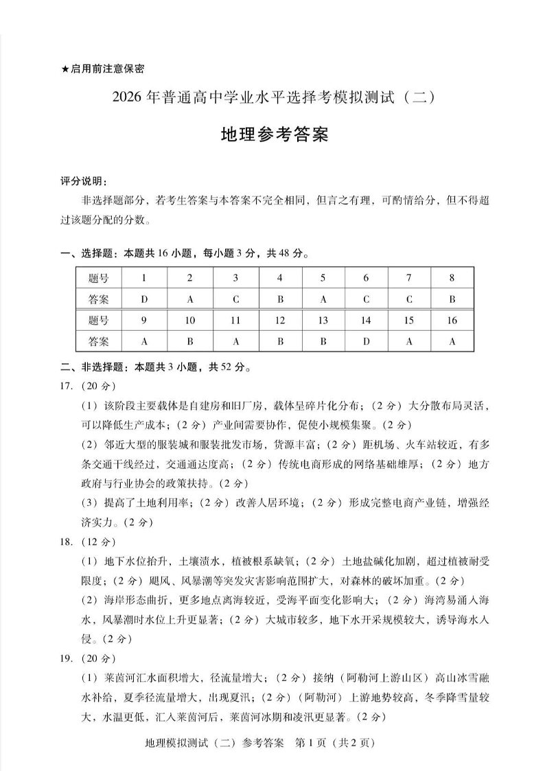 高三地理答案--广东省2026届高三下学期4月模拟测试(二)(广东二模)