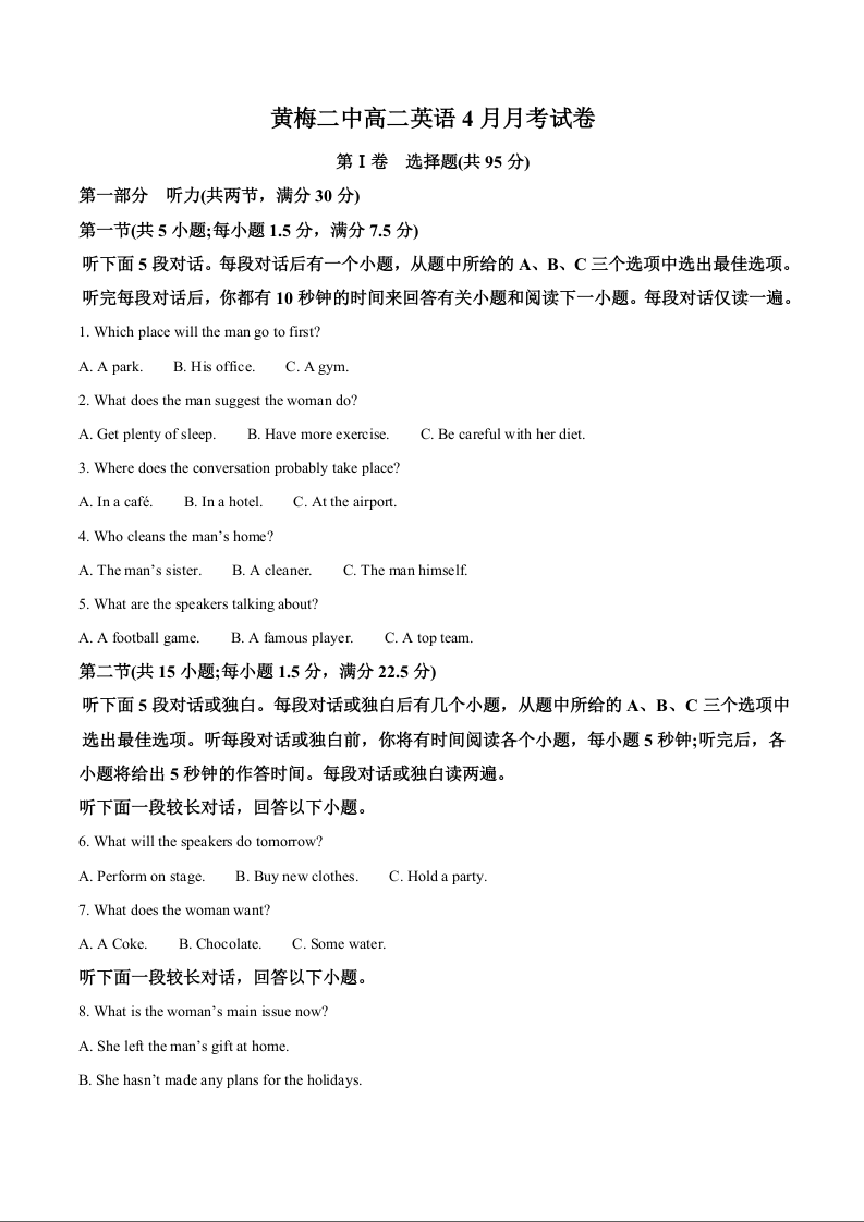 高三英语(原卷版)--湖北省黄冈市重点校2025-2026学年高二下学期4月月考