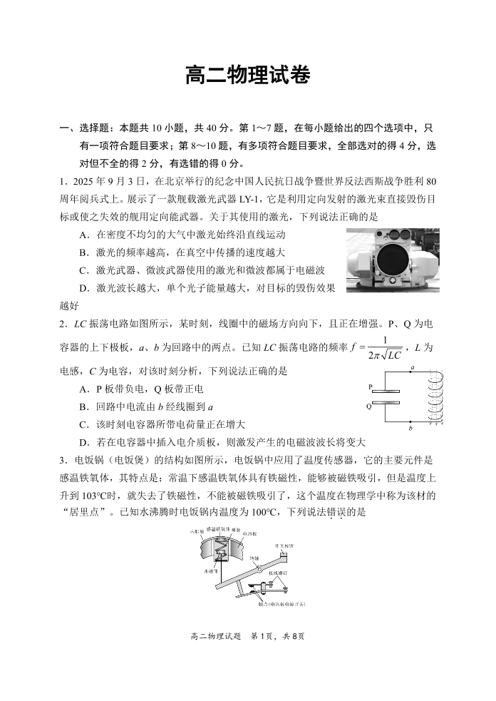 高二物理--湖北省武汉市洪山高级中学2025-2026学年高二下学期期中考试