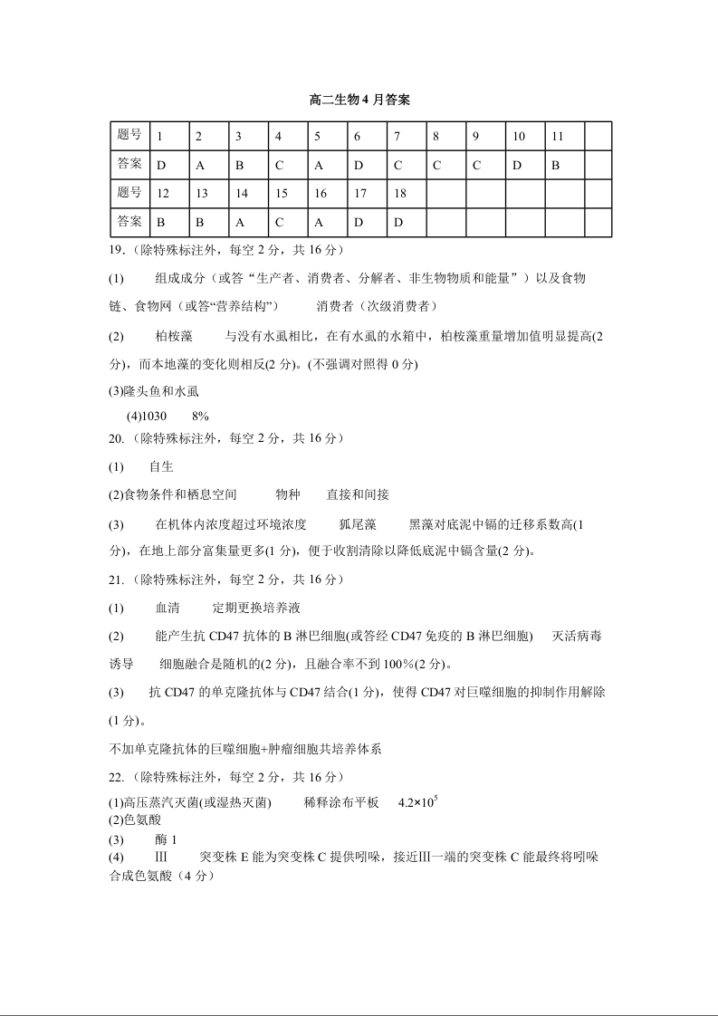 高二生物答案--湖北省武汉市洪山高级中学2025-2026学年高二下学期期中考试